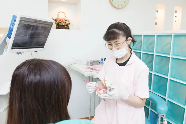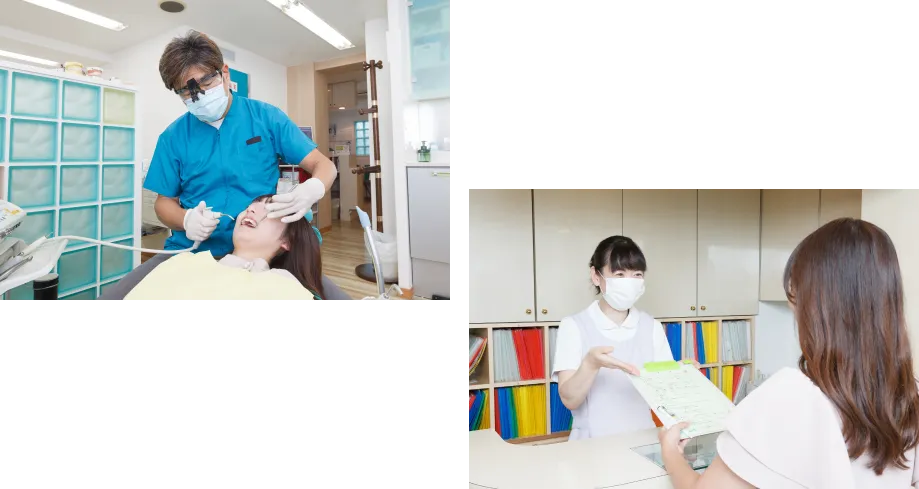 院長はインプラント、副院長は根管治療を担当し、さらに矯正の担当医も在籍。まずは時間をかけて検査・診断を行い、分かりやすい説明で納得のいく治療方針をご提案します。複数ドクターで幅広いお悩みに寄り添います。