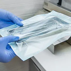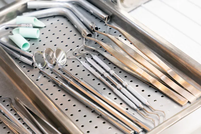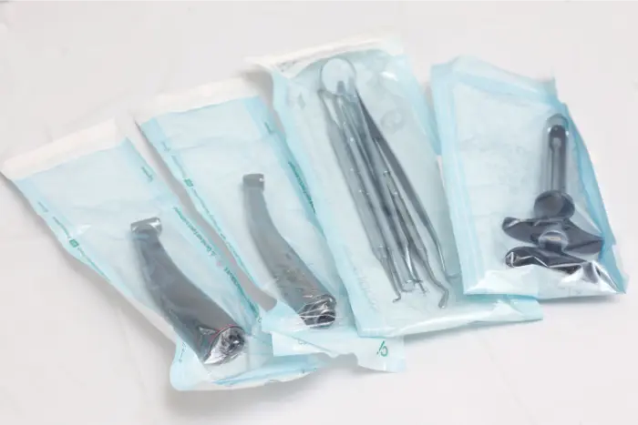 した衛生管理を実施している歯医者です。使用器具は高圧蒸気で滅菌後、滅菌パックで保管し、使い捨て製品も積極的に採用しています。